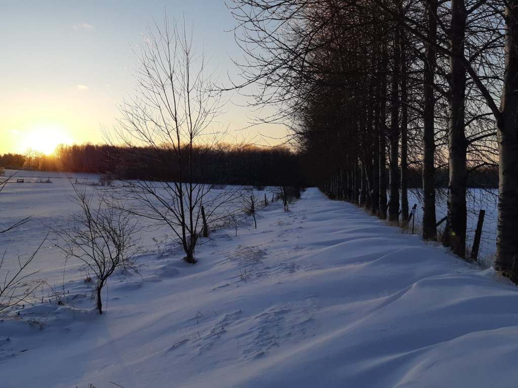 Re-craquement. Re-crissement. Cagoule sur le nez. Cil glacé. Joue qui pique. Kouic kouic jusqu’à la piste. Dunes de neige durcie. Photo. Lumière piégée dans le verglas des branches. Photo. Soleil comme un déversoir d’or au-dessus du bois. Photo. Sentir les serres du froid sur le bout des doigts. Rouler en boule la main dans le fond de la poche. Plaquer le téléphone au chaud sur la peau. Prendre finalement abri de l’érablière.