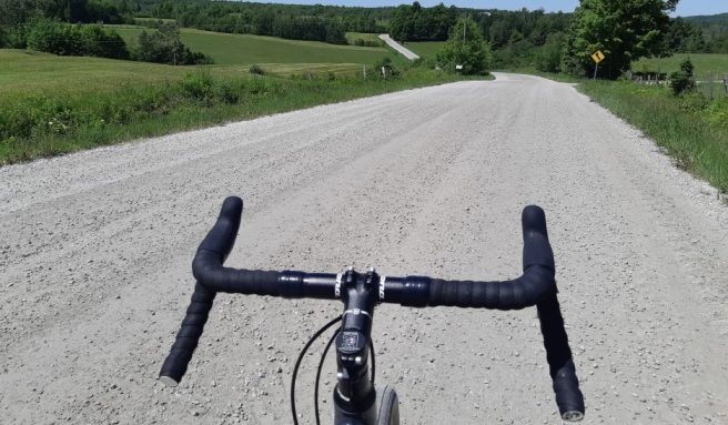 Je roule à vélo dans le Val St-François depuis 2013. J’ai parcouru des milliers de kilomètres sur ses routes, ses chemins, dans ses rangs et ses sentiers. Vous m’avez peut-être vu passer. Au début, mon vélo était noir comme la nuit, puis j’ai changé pour un autre plus sportif, bleu comme le ciel. Puis j’ai été fatigué. J’allais trop vite, trop fort. Mon vélo n’avait plus vraiment de couleur, un peu comme chaque chose où je posais mon regard. J’ai arrêté. Cette année, j’ai un nouveau vélo. Il est fort, beau et va partout. Il n’est pas lent, mais pas trop rapide non plus. Il est reposant. Avec lui, j’ai retrouvé les couleurs. Je roule encore fort, mais je vois mieux et suis un peu moins pressé. Surveillez-moi, je passe encore vite, mais je suis là, sur ma monture, sur mon vélo de couleur terre.