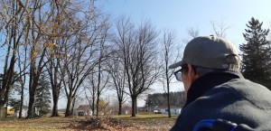 Ma mère ne peut plus aller voir mon père. Il y a un cas de Covid dans sa résidence. On ne peut plus la visiter dans son appartement. On peut la voir à l’extérieur. Je peux marcher avec elle dans le bois du séminaire, à Nicolet. En novembre, les pins centenaires sont comme de grands corps gris efflanqués, l’étang est mort, il règne une paix toute religieuse. Tout ça est magnifique. Nous le ressentons ma mère et moi, en parlons doucement en marchant. Ma mère a vécu toute sa vie avec l’amour de la nature. Comme mon père. Cela la traverse. C’est visible, dans son corps. Elle ferme les yeux et la beauté la traverse. Ce sont les paysages les plus simples qui l’émeuvent. Elle m’a montré un champignon informe sur une souche, un arbuste dépouillé, là, entre deux grands troncs. Nous avons marché, tout lentement, à son rythme, entourés d’arbres.