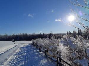 Des fois, en hiver, dans le bois, quand le soleil est penché d’une manière, l’air scintille entre deux troncs, c’est comme une nuée de petites bébittes, l’été, au crépuscule. C’est pas de la neige, ça ne tombe pas, ça se crée, là, comme une pincée de poudre magique pitchée par une fée. C’est le frette qui fait ça, qui débusque chaque atome d’eau dans l’air, en ravit la chaleur et la transforme en lumière… En tous cas, c’est beau sans bon sens.