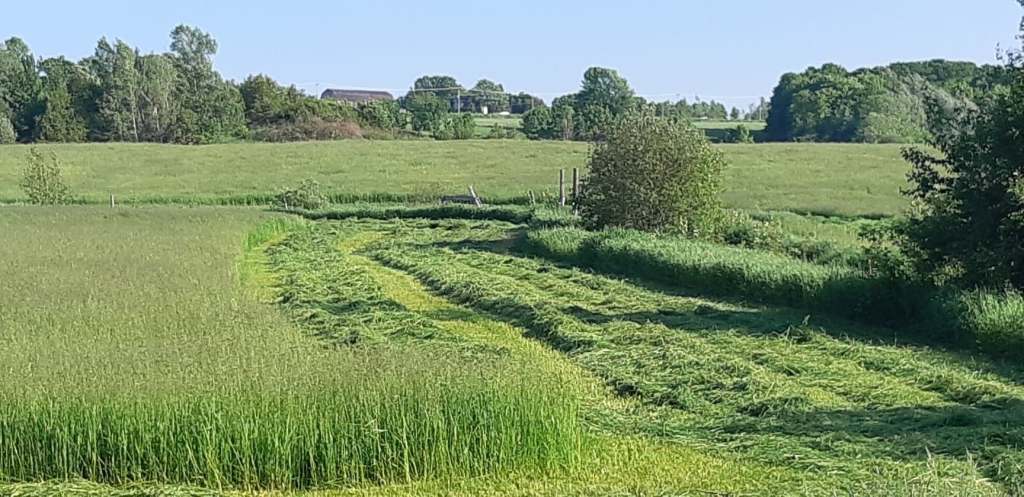 J’ai lu, cette semaine, la très belle chronique de Michel Carbonneau dans le Val-Ouest. Il parle des odeurs du printemps, de la nature, des odeurs en général et des souvenirs et réminiscences qu’elles provoquent. Ce texte proustien m’a lui-même ramené à cette idée que j’avais depuis longtemps de parler du temps des foins de mon enfance à partir de son odeur distinctive. L’odeur du foin. C’est drôle… C’est drôle parce que je ne sens presque plus. Ce n’est pas le Covid, c’est génétique: ma mère…ma grand-mère. J’ai perdu très progressivement ce sens, il en reste un peu, quelques fragrances. Mais le foin, rien. C’est à travers cette absence d’odeur, que je voulais parler de ce souvenir d’enfance. Je voulais m’y plonger visuellement avec tant d’acuité qu’un parfum allait s’en dégager. Pour vous, autant que pour moi. Par la force de l’imagination. Peut-être que les manques, en soi, stimulent autre chose, font naître autre chose et que c’est ainsi que la vie fonctionne. Un échange entre ce qui meurt et ce qui continue de vivre. Un échange d’amour. Une force de Vie. Je ne sais pas… Je peux juste y croire.